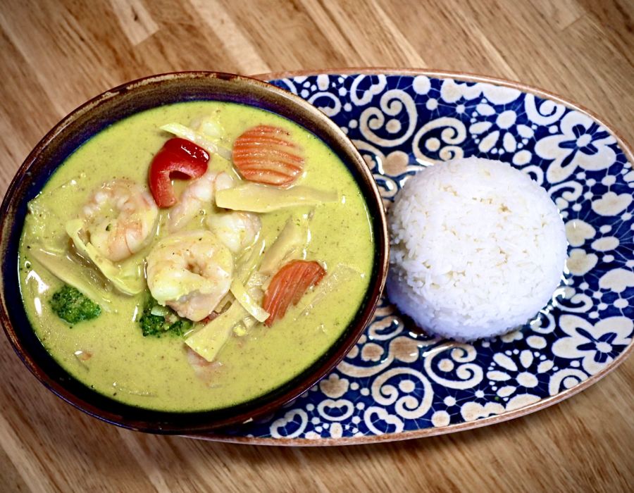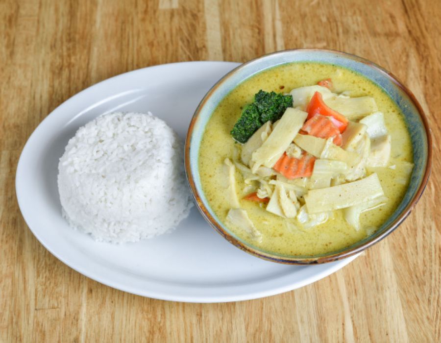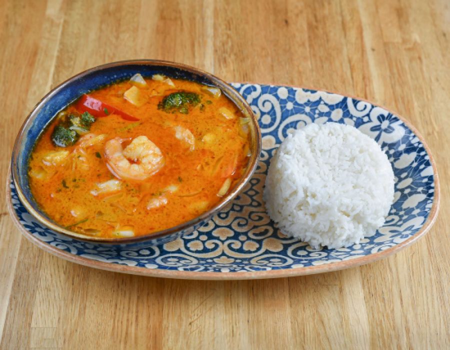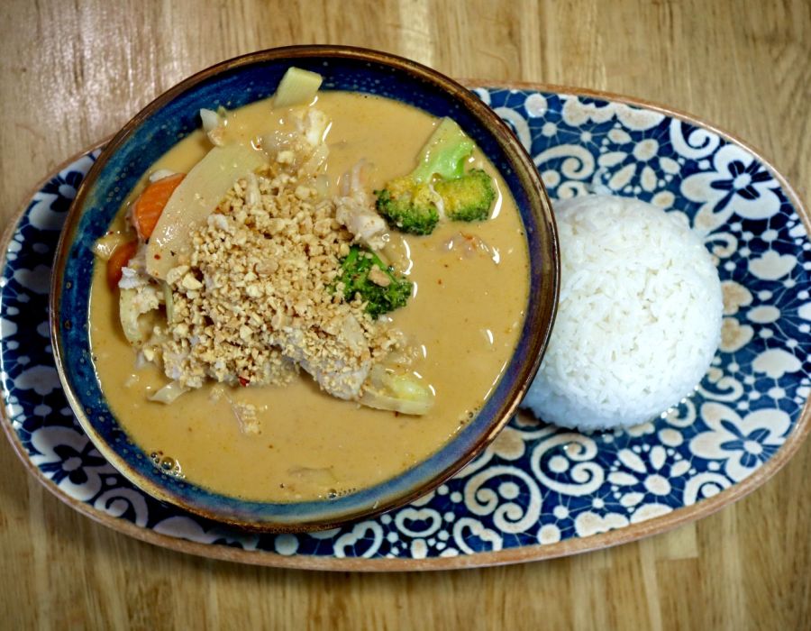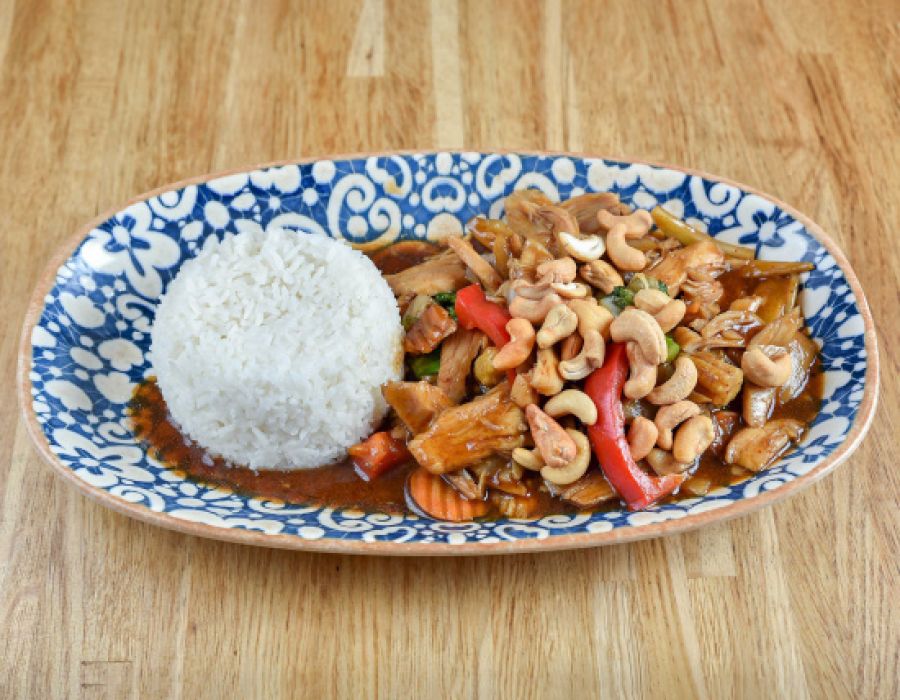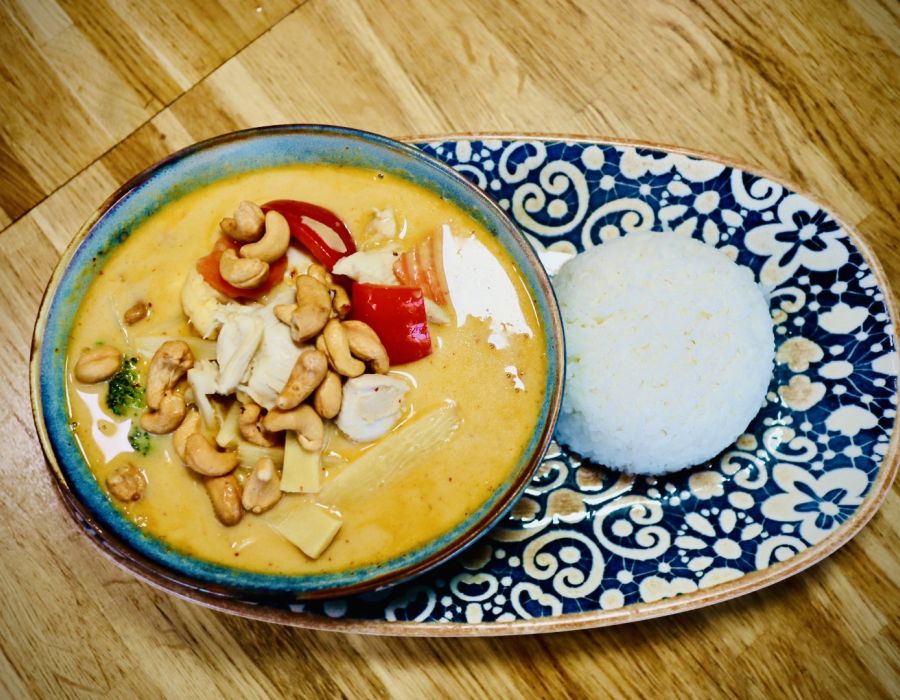 Alla våra curryrätter serveras med ris. Vegetariska rätter (ingår tofu & cashewnötter).