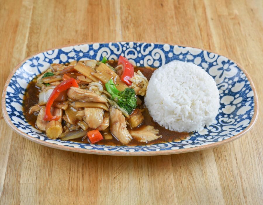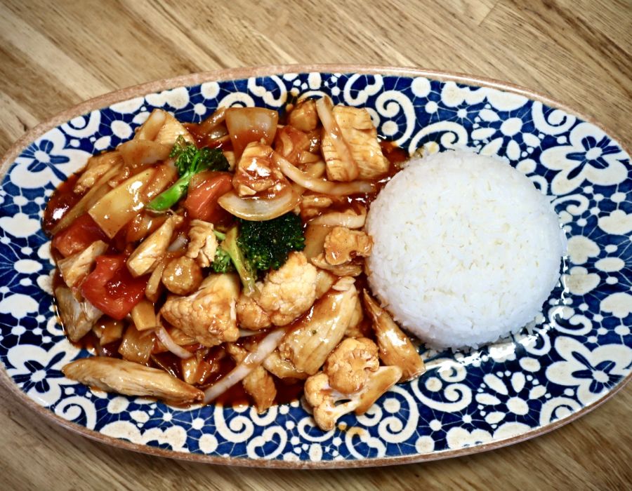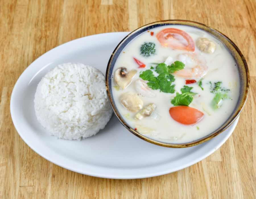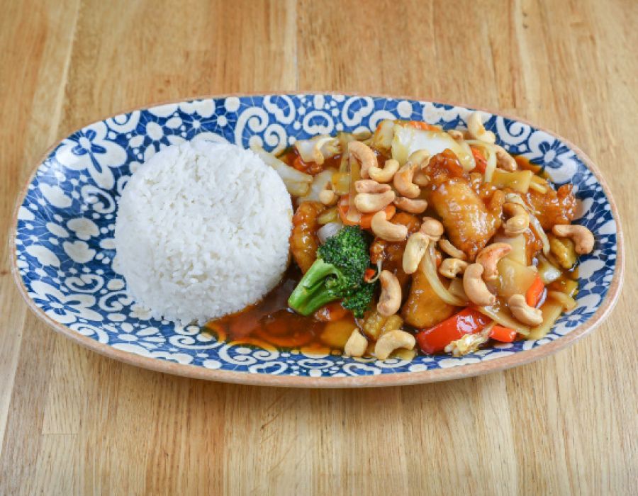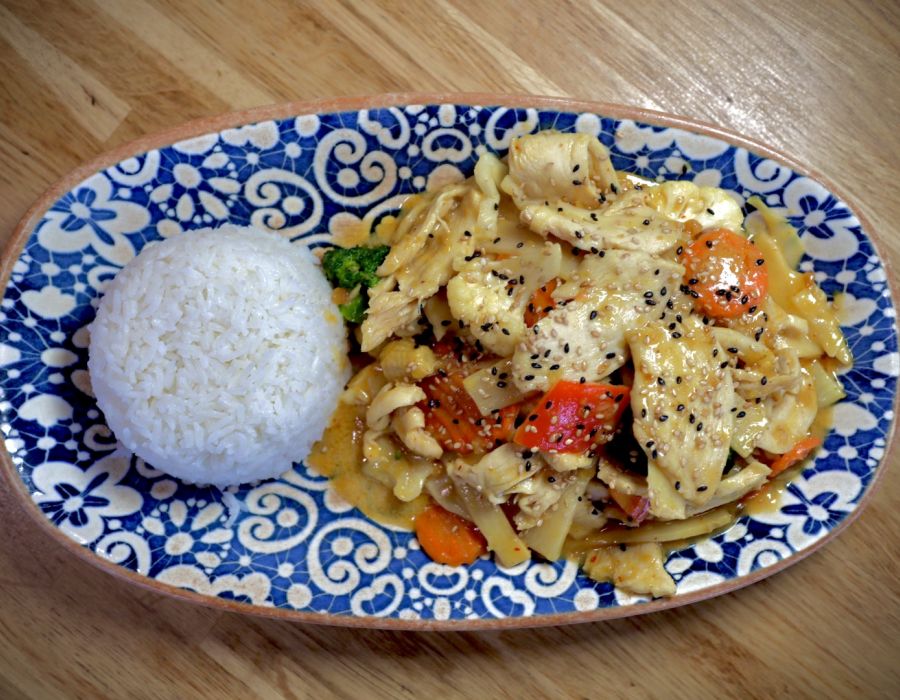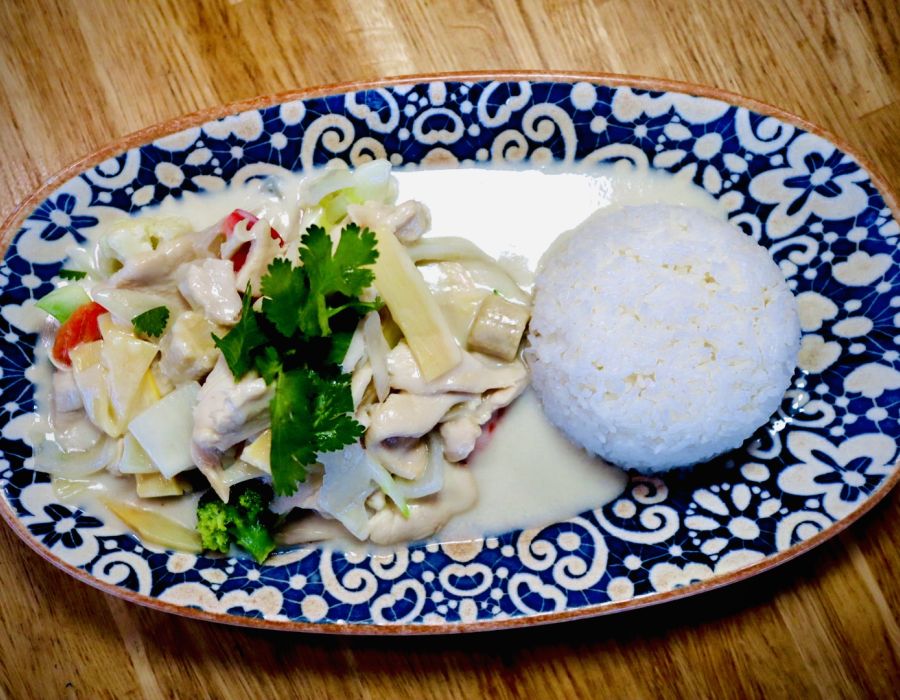 Alla våra curryrätter serveras med ris. Vegetariska rätter (ingår tofu & cashewnötter).