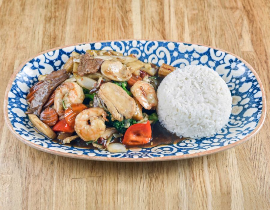 Vegetarisk (tofu & cashewnötter) 129kr /Kyckling 129kr/ Biff 140kr/Räkor 146kr /Bläckfisk 146kr